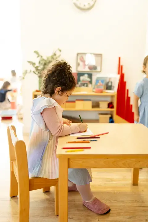 Este espacio incluye áreas dedicadas al movimiento, la vida práctica, el lenguaje y la autonomía. Cada actividad está cuidadosamente diseñada para que los niños adquieran confianza en sus capacidades y desarrollen una base sólida para su aprendizaje futuro, siempre respetando su ritmo y necesidades únicas.